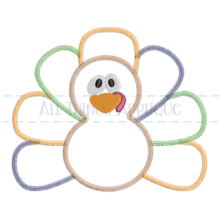 This charming boy turkey applique design is perfect for adding a touch of whimsy to any outfit. Use your favorite fall fabrics to create a unique and fun display of turkey feathers.