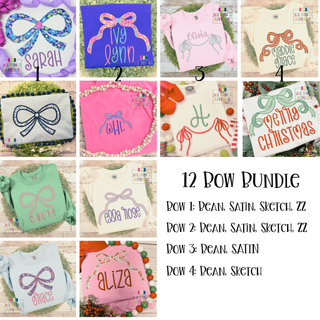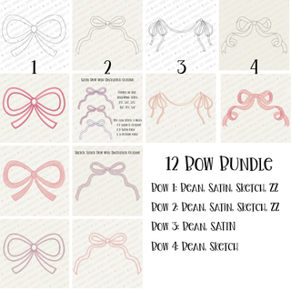 This Bow Bundle includes 12 adorable bows featuring 4 unique designs and stitch styles. Perfect for adding a playful pop of charm to any outfit or gift, these bows bring variety and fun to your collection. Mix, match, and share the cuteness!