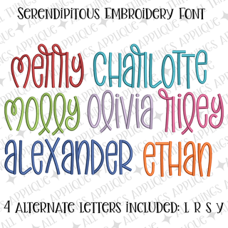 Add a touch of whimsy to your embroidery projects with the Serendipitous Embroidery Font. Featuring playful loops and charming swirls, this font brings a joyful, creative flair to any design. Perfect for personalizing gifts, clothing, or home décor with a fun, lighthearted style.