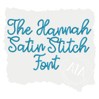 The Hannah Satin Stitch Embroidery Font is an Embroidery Font created/digitized in 2022 by All Things Applique for use on your embroidery machine.