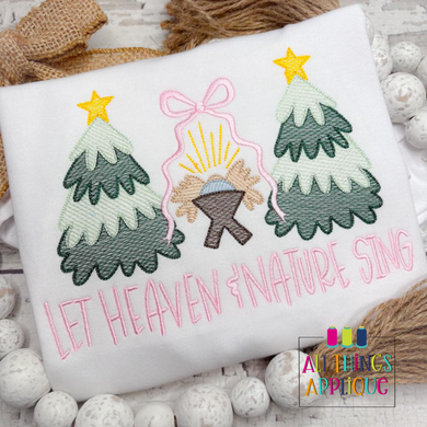 Celebrate the true meaning of Christmas with our Christmas Tree Nativity design! See Mary, Joseph, Baby Jesus, and adorable animals shaped to create a Christmas tree.