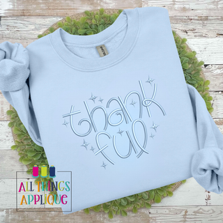 Celebrate gratitude in style with this charming hand-lettered applique design! Perfect for adding a warm, heartfelt touch to pillows, tote bags, quilts, or wall hangings. Whether you're stitching gifts for loved ones or decorating your own space, this design spreads good vibes and reminds everyone what matters most. A delightful way to stitch kindness into your creations!