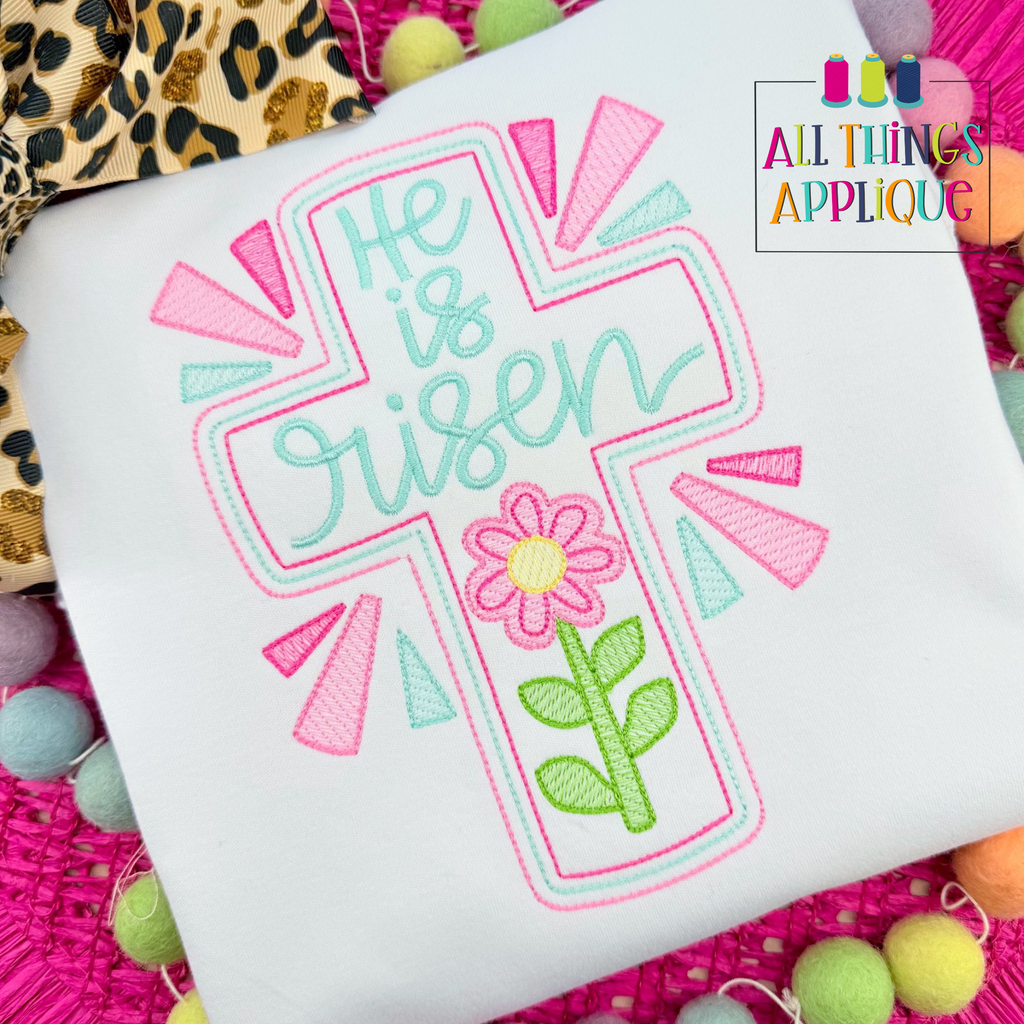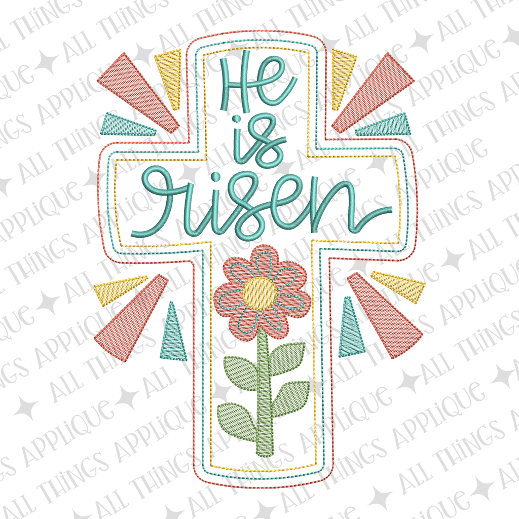 Celebrate faith with this stunning He is Risen cross design, featuring an elegant cross adorned with a cheerful flower and fun stitching details. Perfect for Easter projects, faith-based gifts, or adding spiritual inspiration to your embroidery collection.