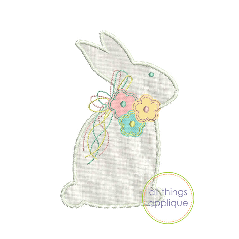 Easter Bunny with Flowers Applique Design in Zig Zag Stitch